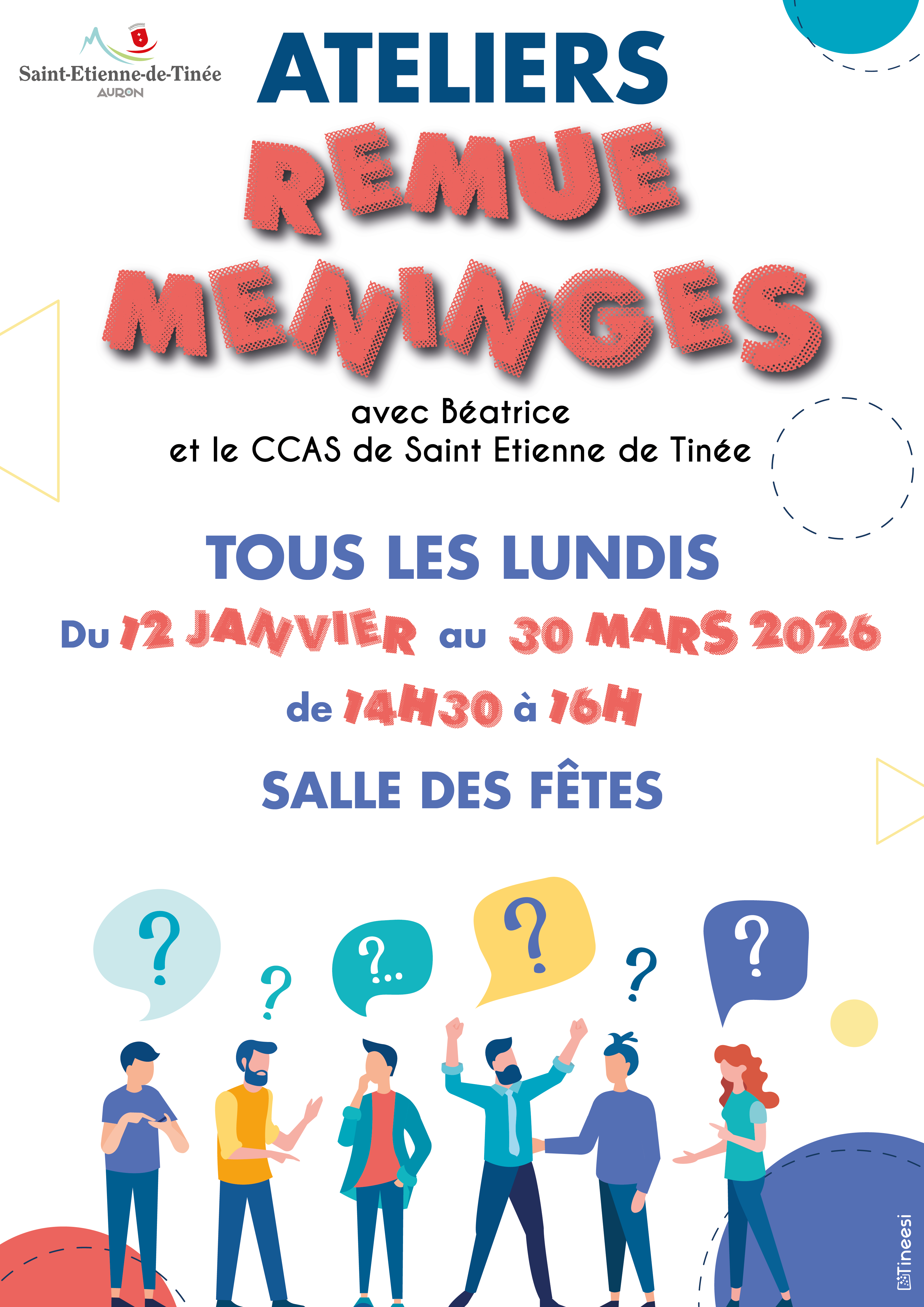 Ateliers "Remue Méninges" Tous les lundis du 12 janvier au 30 mars 2026 de 14h30 à 16h Salle de la Mairie